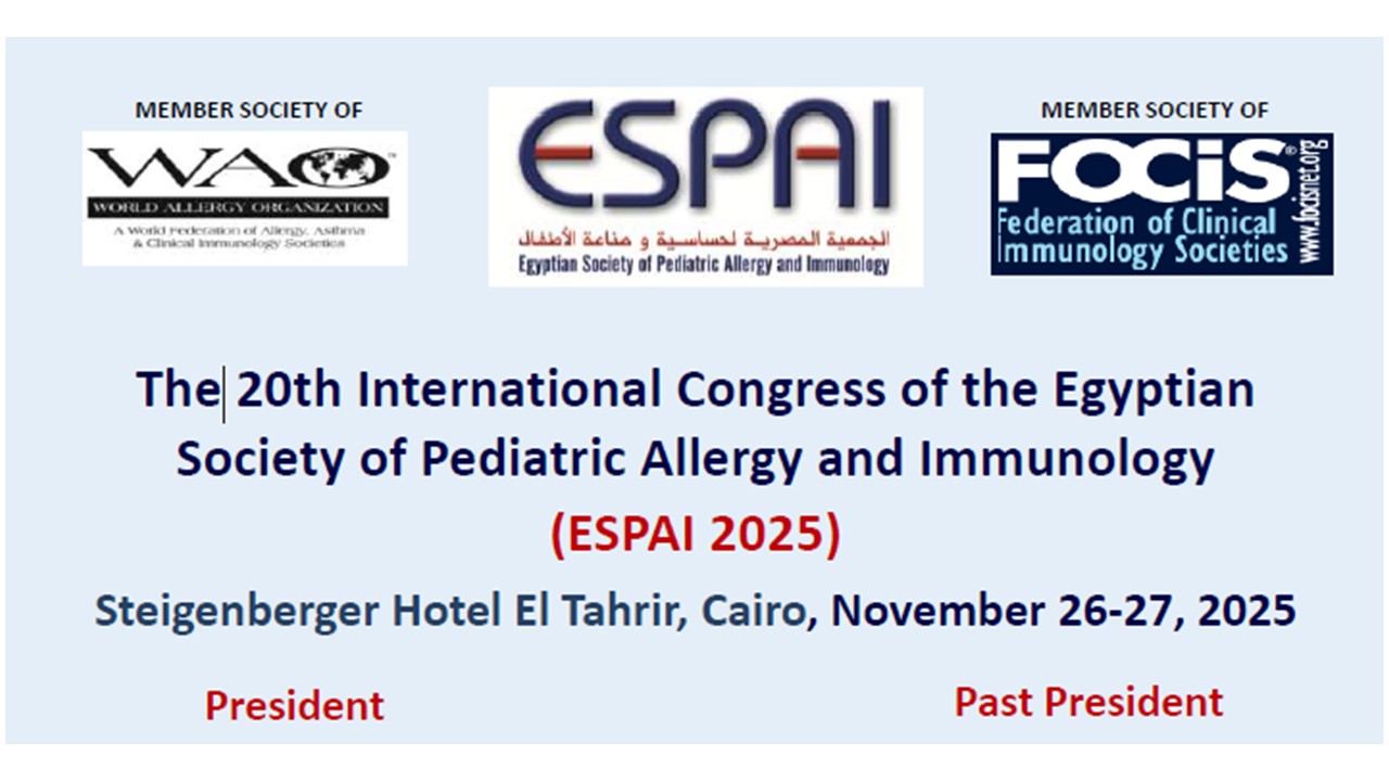 ESPAI news Scientific Program of The 20th International Congress of the Egyptian Society of Pediatric Allergy and Immunology ESPAI 2025 Semifinal ProgramDownload